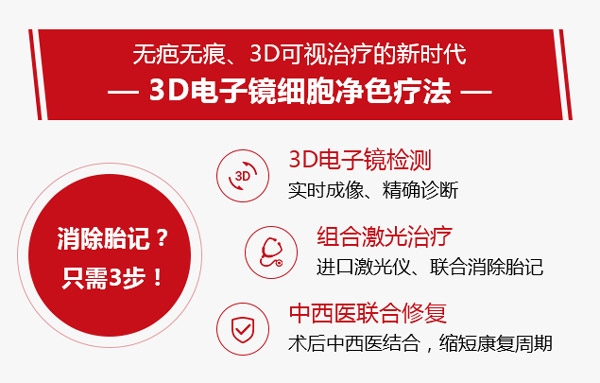 很多人年幼时,家长固执的认为胎记是天生的,根本无法祛除,导致错过了最佳的治疗时机,胎记不仅伴随其长大,甚至颜色加深面积扩大,所以成年人治疗难度也更大,选择治疗正确的治疗方法尤其重要。目前,胎记治疗最安全、最有效的是激光治疗,而最新的激光技术是美国第三代染料激光治疗仪,重庆迪邦皮肤病医院开展的“3D电子镜细胞净色疗法”即采用了最新的激光技术,不仅治疗效率高,配合医院的中西医康复治疗,还可以缩短治疗周期。