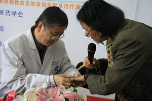 进入现场会诊时间,医生团成员为超百位患者提供皮肤病防护和治疗方面的疑难解答,并为白癜风、银屑病、慢性皮炎、鱼鳞病等数十位皮肤顽症患者联合会诊。正在迪邦接受大疱性表皮松解症(严重的基因遗传性水疱型皮肤病)治疗的杨先生表示:“经过系统的治疗,瘙痒得到了很大的缓解,易感染、易破皮的情况也有极大的改善。我感觉又有了希望。”